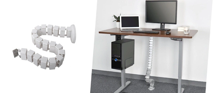 Atrakcyjny i praktyczny sposób na utrzymanie porządku w okablowaniu. Kręgosłup prowadzi kable od podłogi do biurka i zapewnia ochronę przed potencjalnymi uszkodzeniami mechanicznymi. Odpowiednia wielkość bloków pozwoli pomieścić ponadprzeciętne ilości kabli.