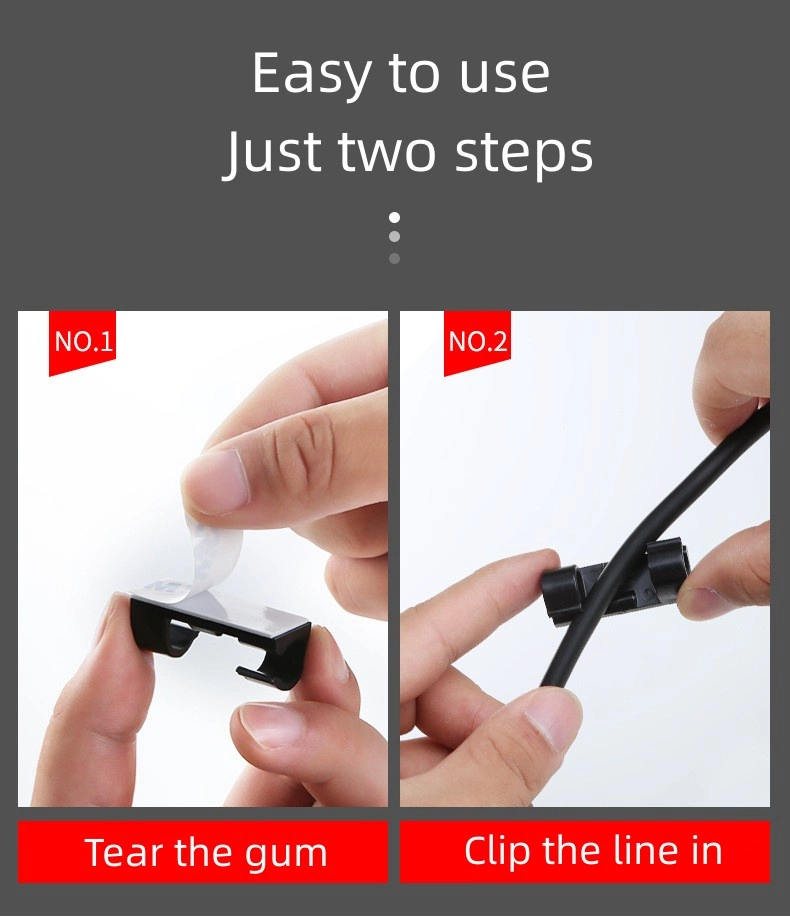 Organizing cables has never been so easy. Simply peel off the protective paper on the back of the holder and stick it to the surface of your choice. Insert cables as needed, and with the help of our holders you will create an aesthetically pleasing and orderly cable management system. No unnecessary tangles, no mess!