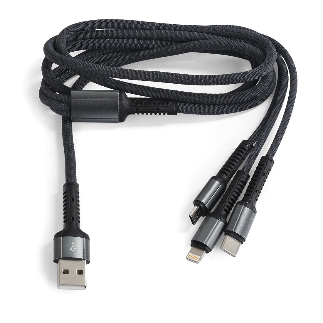 • The 3-in-1 cable with USB-C, microUSB and Apple Lightning 8pin plugs allows you to conveniently carry one cable with three charging plugs instead of three different cables. 1.2m length.