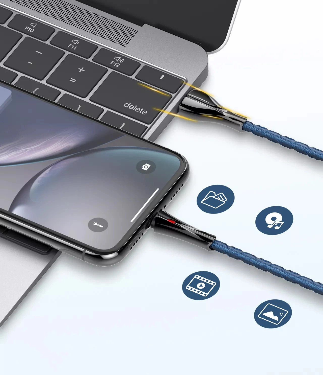 Kabel USB oprócz ładowania obsługuje również szybką transmisję plików np. obrazów, filmów, dokumentów. Możesz za jego pomocą przesyłać dane między urządzeniami i nie trwa to tak długo jak w przypadku standardowych kabli USB konkurencji.