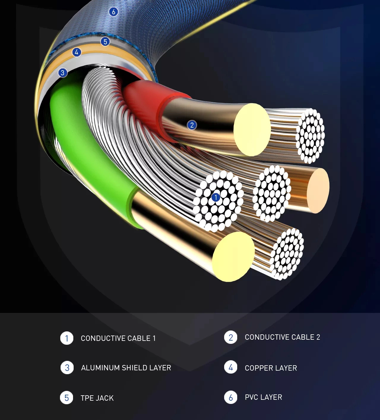Kable USB LDNIO są odporne na zużycie, gięcie i dodatkowo są wykonane z niepalnego materiału. Zapobiega to szybkiemu złamaniu się kabla, tak jak to ma często miejsce w przypadku innych kabli. Oplot kabla jest stworzony z warstwy TPE (termoplastyczny elastomer poliestrowy), który jest odporny na temperatury i chemię, a także umożliwia bezodpadowe przetwarzanie, co jest ważne dla środowiska - z powodzeniem zastępuje gumę czy lateks. Wykonany z kabli miedzianych i izolacji z elastycznych materiałów.