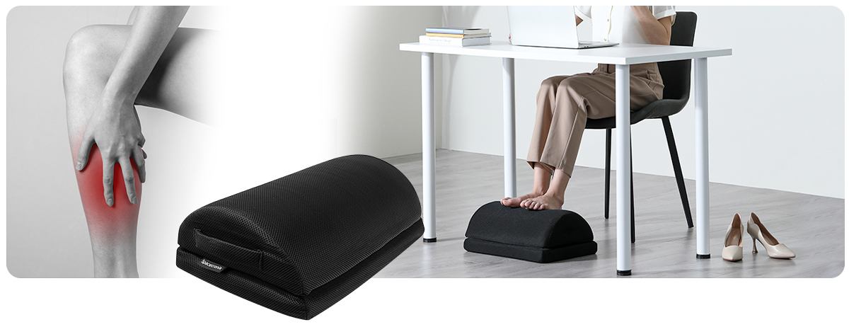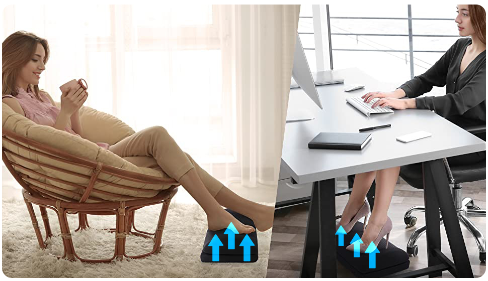 • The ergonomic desk footrest provides solid support for your feet and helps you maintain an upright sitting position. Improved posture has been proven to reduce pain and fatigue in the back, feet, legs and knees, and improve circulation.