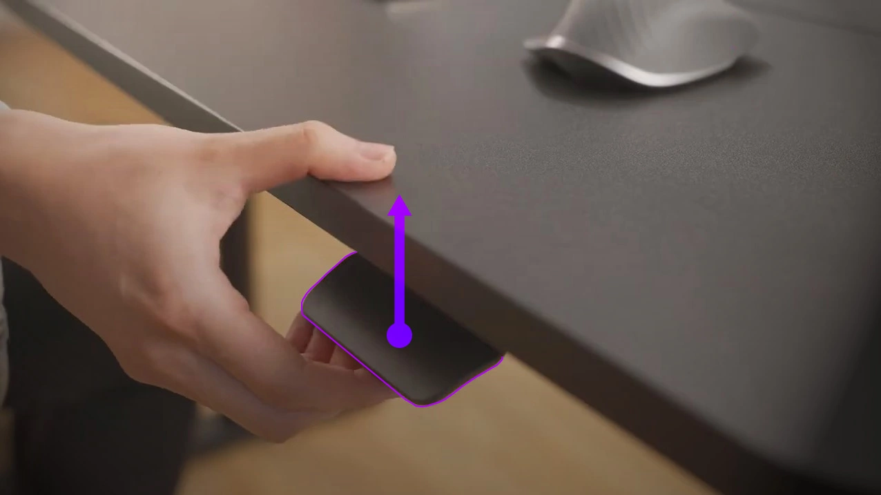 Thanks to the use of a gas spring, raising the desk does not require you to be connected to electricity. The process itself is done by pressing a small handle, mounted under the top near the edge of the desk. Raising and lowering the desk is smooth, quiet and fast. It is a simple process that does not require you to dismantle the desk.