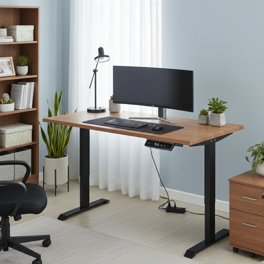 • Ergonomia w domu i pracy. Elektryczny stelaż wyposażony w jeden silnik z regulacją wysokości blatu w zakresie 720 - 1200 mm. Nośność 80 kg. Zapamiętywanie pozycji, system antykolizyjny. W kolorze czarnym.