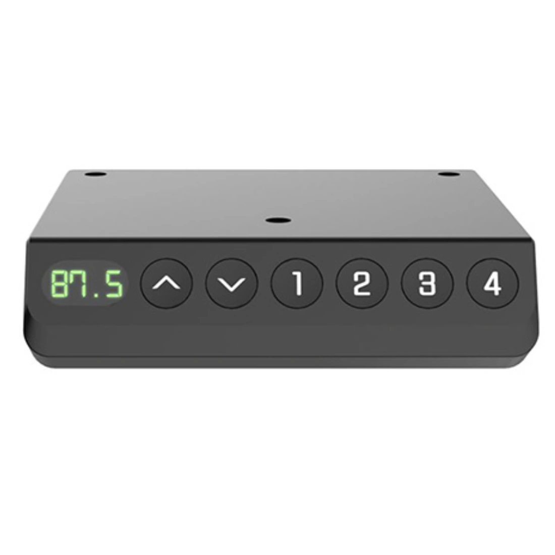 Stelaż do biurka elektrycznego został wyposażony w kontroler z udogodnieniami. Reguluj wysokość za pomocą przycisków "góra" oraz "dół" i obserwuj aktualną pozycję na wyświetlaczu LED. Zapamiętaj wybrane pozycję i wracaj do nich w przyszłości naciskając jeden z czterech programowalnych przycisków pamięci wysokości.