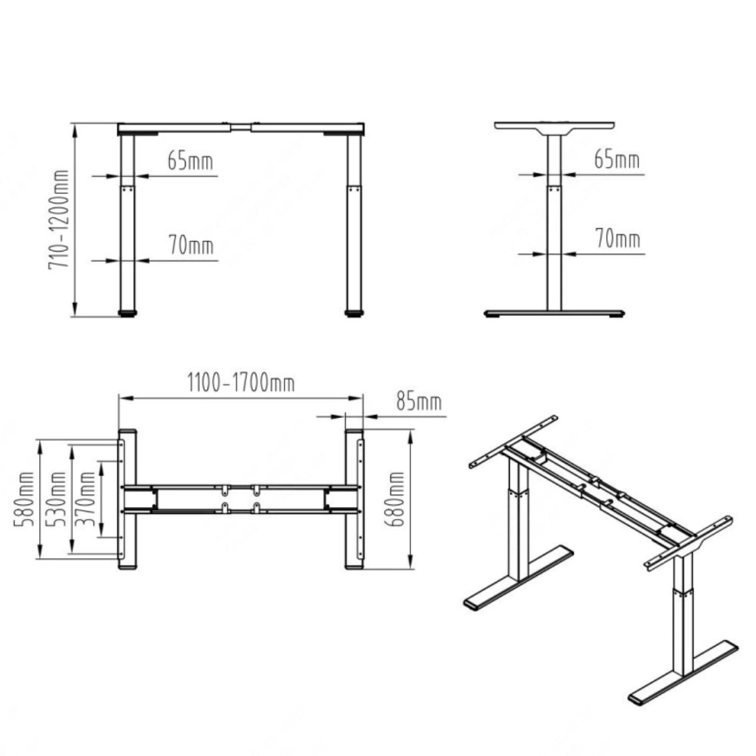 • Electric desk frame that allows you to create an ergonomic desk and work alternately in standing and sitting positions. Height adjustment from 71 cm to 120 cm. Two-motor system. Load capacity of up to 100 kg. Anti-collision system. Controller with USB cha