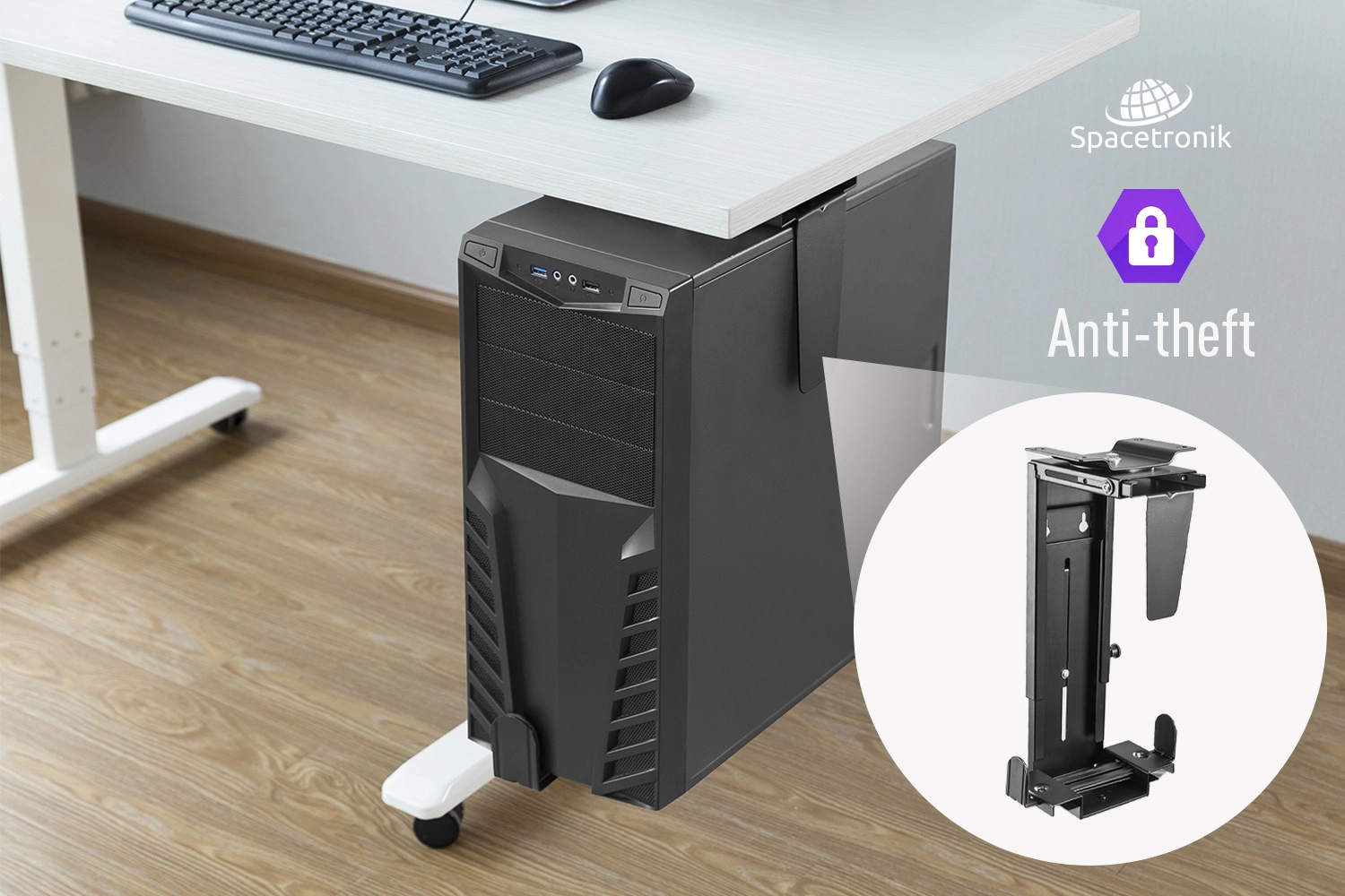 Uchwyt komputera służy do zapewnienia wygody użytkownikom poprzez zwiększenie porządku woków biurka. Jest to szczególnie przydatne, gdy chcemy ukryć urządzenie, które nie muszą być widoczne na biurku lub zajmują miejsce na nogi. Takie rozwiązanie pozwala także na lepszą organizację kabli i sprawdzi się w przypadku biurek z regulacją wysokości.