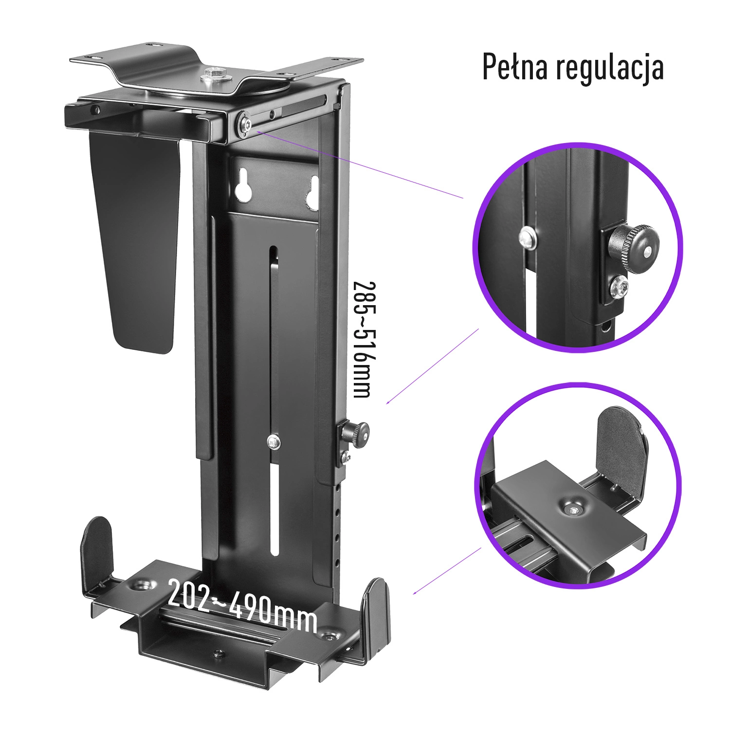 - Wymiary przestrzeni na komputer: wysokość 285-516mm, głębokość 202-490mm, szerokość 88-203mm