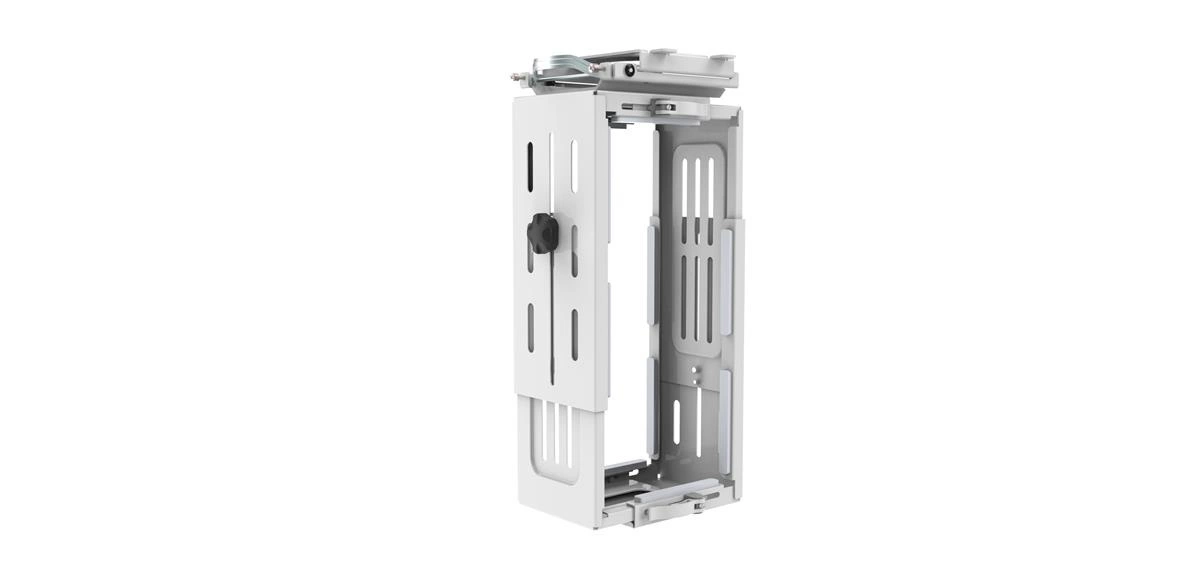 • Uchwyt biurkowy PC przeznaczony do montażu komputera pod blatem biurka. Max. dopuszczalny udźwig: 15kg. Rotacja 180 st. Pasuje do większości komputerów (zarówno typu desktop & tower) w przedziale 128-210mm (szer.) & 285-512mm (wys.). W kolorze białym.