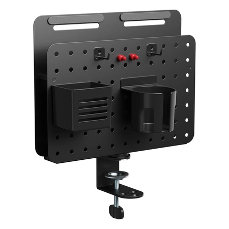 obrotowa tablica perforowana na biurko, organizer biurowy Spacetronik Holdee, tablica z uchwytami, tablica na akcesoria biurowe, organizer obrotowy do biurka, pegboard na biurko, organizer zaciskowy, perforowana tablica pionowa
