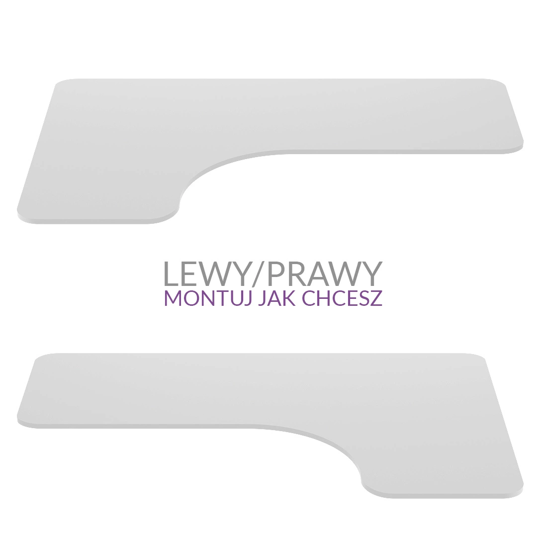 Sturdy universal desk or table top made of high quality 18 mm thick laminated board on both sides. It has rounded corners and is protected with ABS edging. Combined with an electric desk frame, it is an ergonomic and modern workplace accessory, both at home and in office spaces. L-shaped top, designed for corner racks.