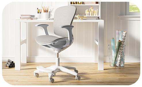Zastosowanie oddychającej siatki na oparciu i siedzisku zapewnia dodatkową cyrkulację powietrza, maksymalizując komfort użytkowania fotela do biurka dla dziecka.