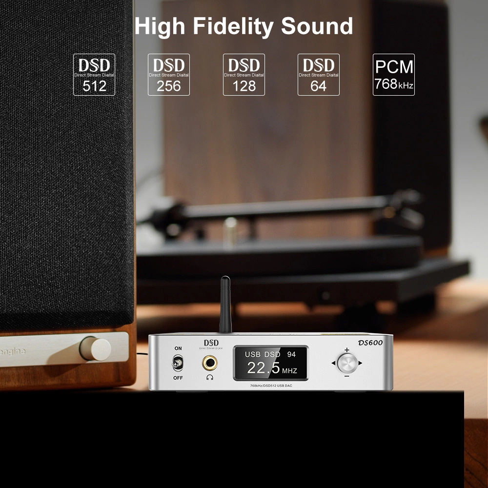 Dekoder audio DS601 został wyposażony w podwójny układ chipsetów ESS9038Q2M o wysokim zakresie dynamiki i znikomych zniekształceniach. XMOS XU208 zapewnia dekoderowi doskonałe możliwości dekodowania, USB obsługuje DSD64-DSD512 i PCM 16Bit/44.1KHz-32Bit/768kHz z czystszym dźwiękiem. Urządzenie gwarantuje THD+N na poziomie 0,00012%, SNR powyżej 126dB oraz DNR do 126dB.