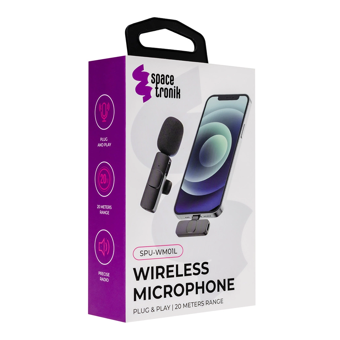 Bezprzewodowy mikrofon do telefonu komórkowego z wejściem Lighting dla iPhone'a Spacetronik SPU-WM01L