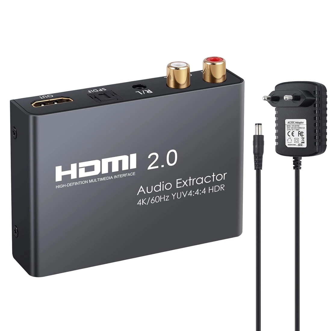 Extractor HDMI na HDMI + Audio (R/L+SPDIF) pozwala na podłączenie urządzenia wysyłającego sygnał audio i video (tuner, konsola, dvd, blu-ray) do telewizora kablem HDMI. Dodatkowo można wyodrębnić sygnał audio z urządzenia i przesłać go do amplitunera kina domowego lub innego tego typu urządzenia. Dzięki takiemu rozwiązaniu dźwięk będzie słyszalny standardowo z głośników telewizora i dodatkowo z drugiego źródła po włączeniu amplitunera. Ciekawe rozwiązanie gdy chcemy panować i sami decydować kiedy dźwięk ma być słyszalny z danego urządzenia. Mozliwośc przełączania wyjścia dźwieku 2.0 lub 5.1.