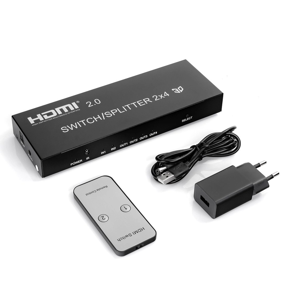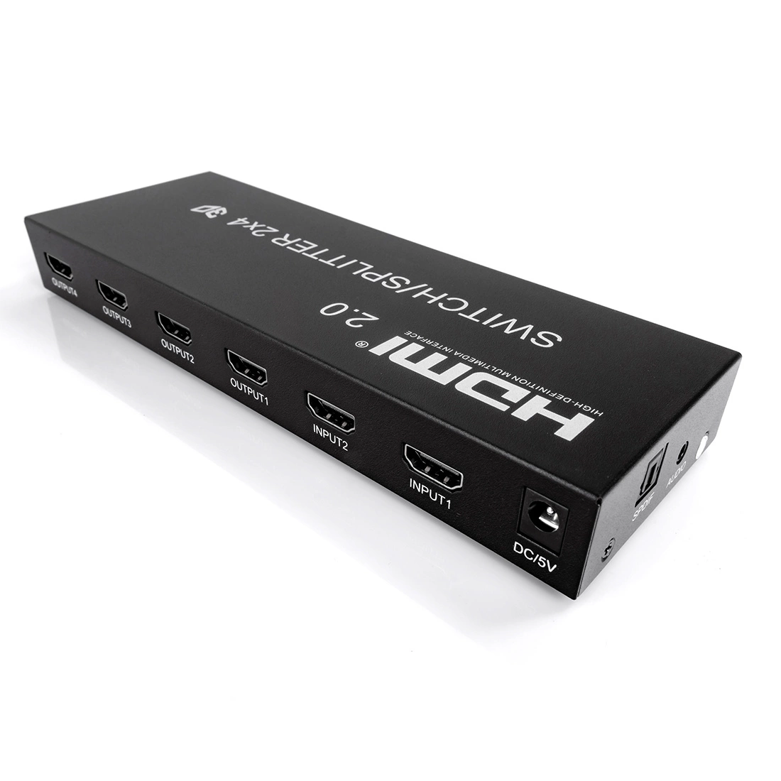 - 2 wejścia HDMI przełączają się i dzielą na 4 wyświetlacze HDMI.