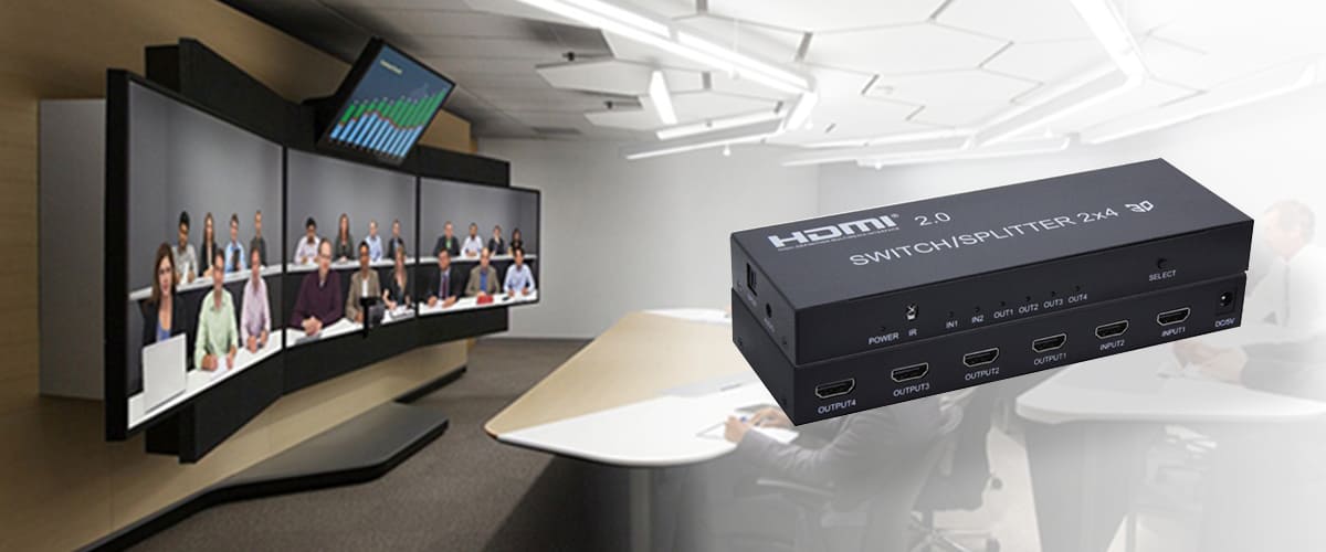 Matrix HDMI 2x4 może łączyć 2 źródła sygnału HD z 4 wyświetlaczami HD, dodatkowo urządzenie posiada wyjście toslink lub słuchawek stereo. Matrix umożliwia łatwe przełączanie lub podział dwóch urządzeń HDMI na cztery monitory lub projektory zgodne z HDMI. Porty wyjściowe mogą realizować niezależne wyjście audio przez stereofoniczny zestaw słuchawkowy. Urządzenie idealnie sprawdza się w zakresie kontroli centrum danych, dystrybucji informacji, prezentacji na sali konferencyjnej, środowisk szkolnych i szkoleniowych.