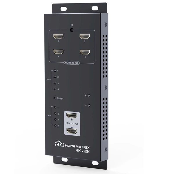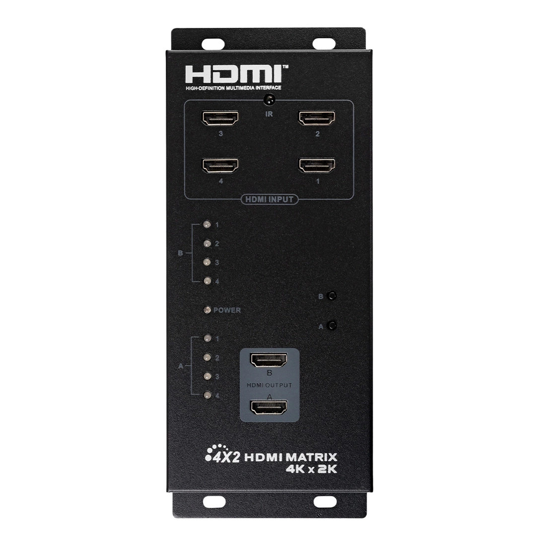 • Matrix HDMI 4x2 has the ability to distribute the signal from 4 HDMI-equipped source devices to 2 HDMI devices simultaneously or independently. Supports HDMI 1.4b, 3D, 4K. DC 5V power supply included.