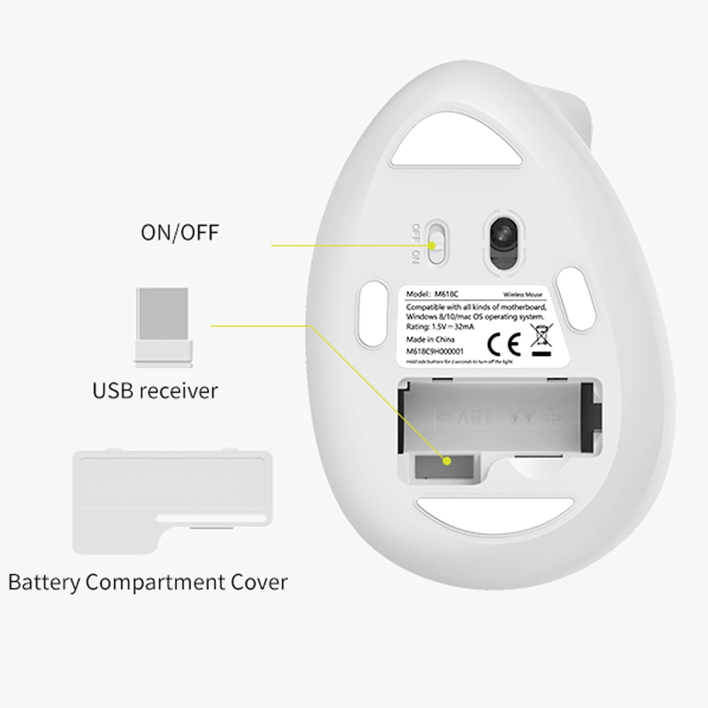 Bezprzewodowa mysz pionowa Delux M618C RGB biała6938820407690
