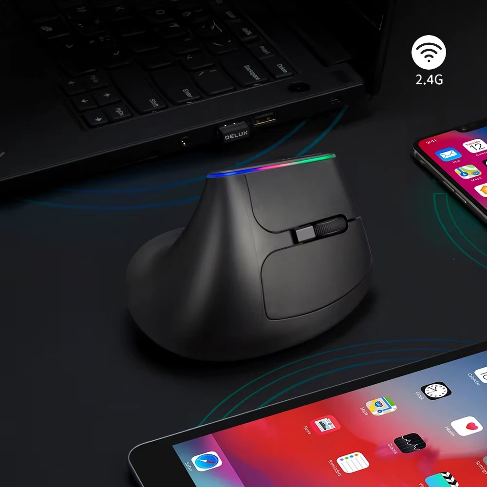 Bezprzewodowa mysz pionowa Delux M618C RGB czarna6938820407096