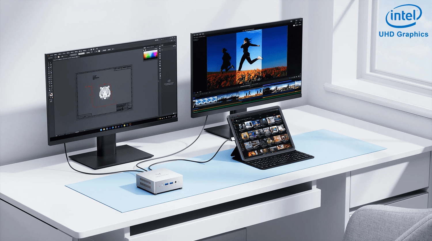 • Minisforum UN100L Mini Computer. Graphics Card: Intel UHD integrated graphics, Operating System: Windows 11 Pro, RAM: 16GB single-channel memory, LPDDR5-4800 MHz, Hard Drive: M.2 2280 PCIe3.0 SSD, 256GB Processor: Intel® N100.