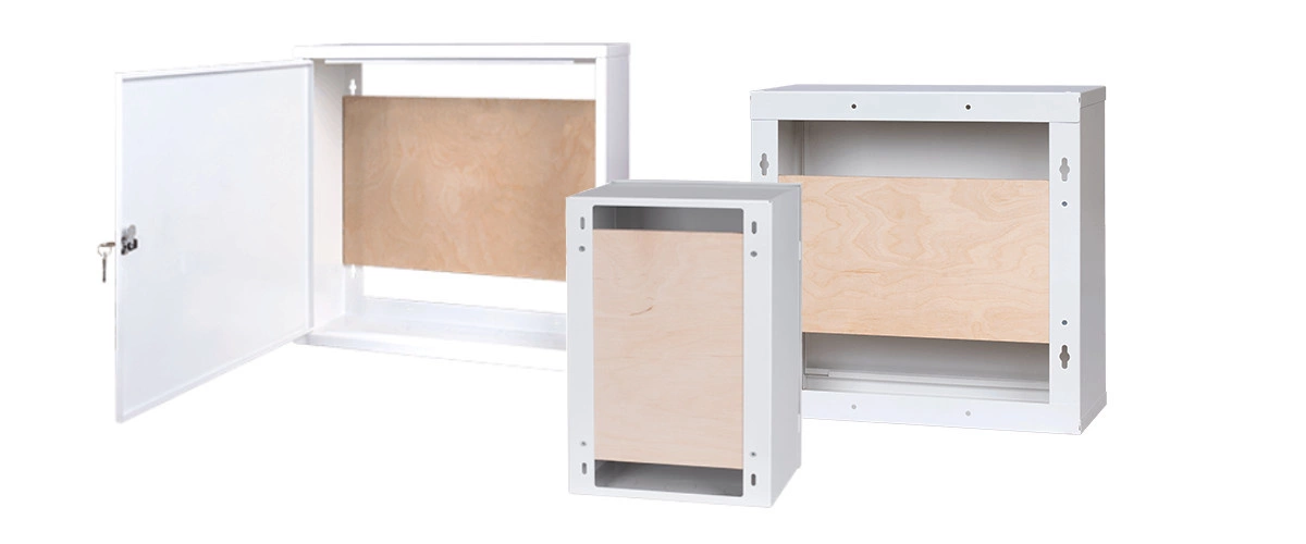 Szafka wykonana bez widocznych spawów (gładki front i boki szafki). Do zestawu dołączamy płytę montażową - solidny panel wykonany z wodoodpornej sklejki o grubości 6 mm. Montaż dodatkowej ścianki ze sklejki, zdecydowanie ułatwia dowolne zagospodarowanie wewnętrznej przestrzeni obudowy i zapewnia wygodną instalację urządzeń.