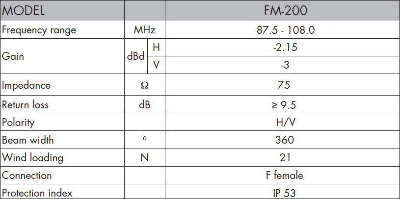 Antena służy do odbioru sygnału radiowego w paśmie 87,5-108 MHz. Idealnie nadaje się do miejsc, gdzie sygnał radiowy (głównie stacji lokalnych) jest stosunkowo słaby lub osłabiony. Sygnał z tej anteny można bez obaw sumować z sygnałem z innych anten (naziemnych, satelitarnych)