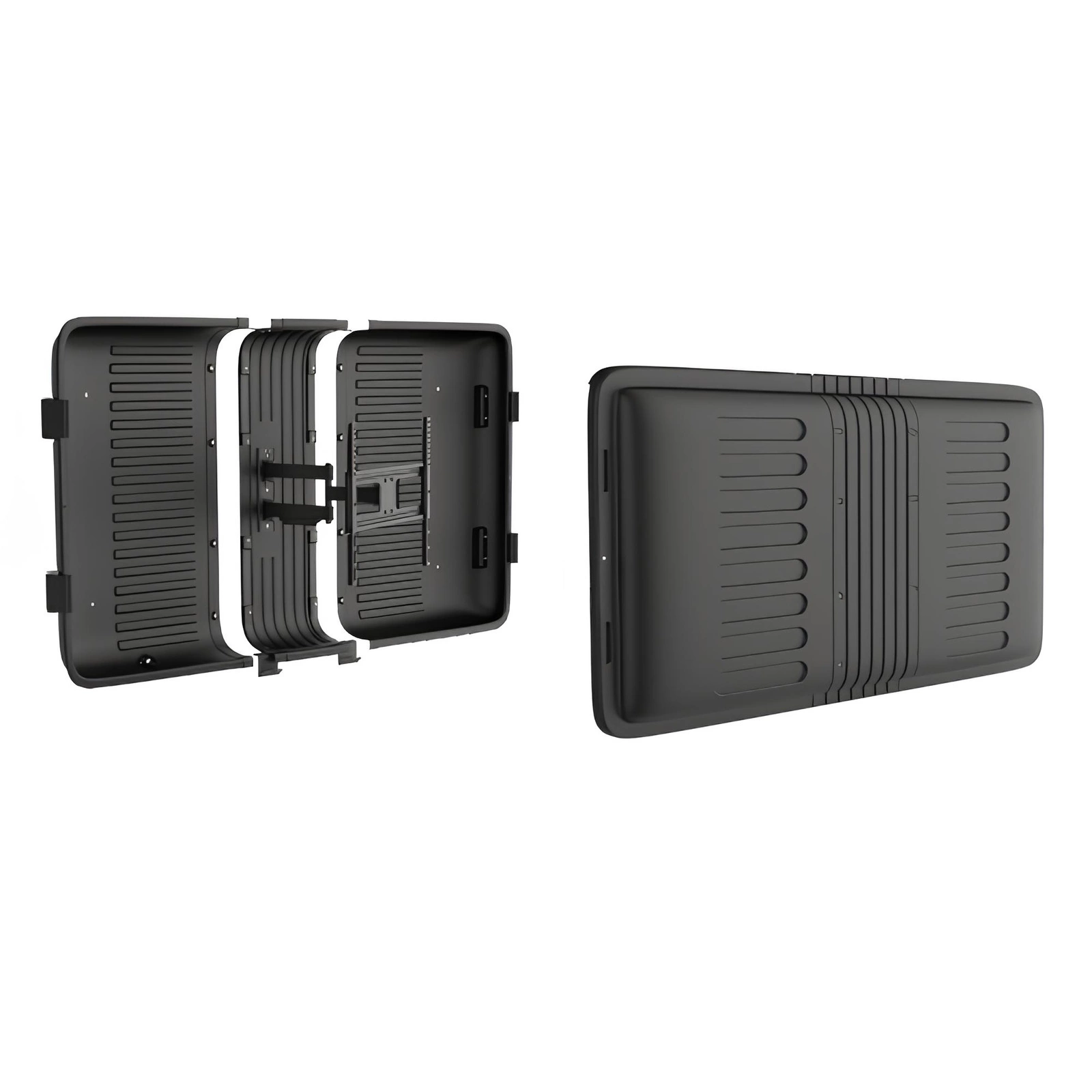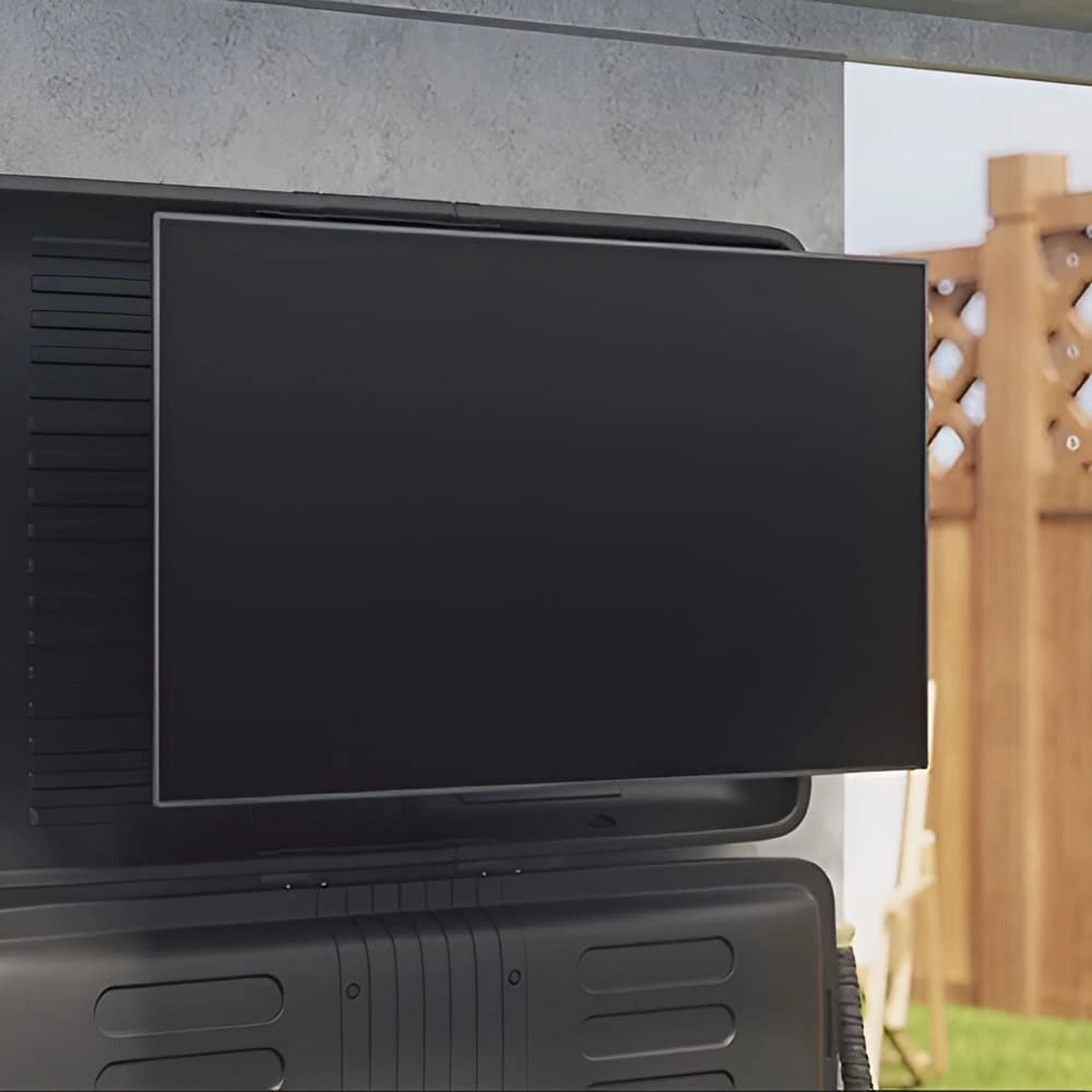 The TV housing is made from a combination of high-quality plastic (ABS+ASA) and steel. This makes it weatherproof and you can use it without any worries. The maximum load capacity is up to 50 kg, so you can easily mount most TVs on it. What's more, it has been powder coated, which significantly reduces the risk of corrosion.