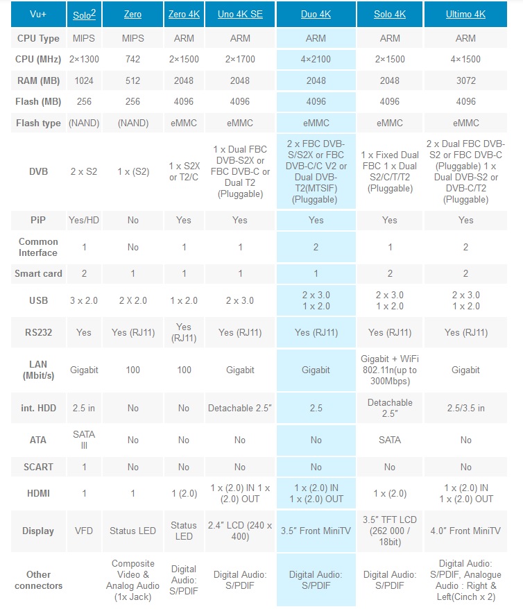 W naszej ofercie również wiele innych tunerów VU+. Sprawdź i porównaj specyfikację: