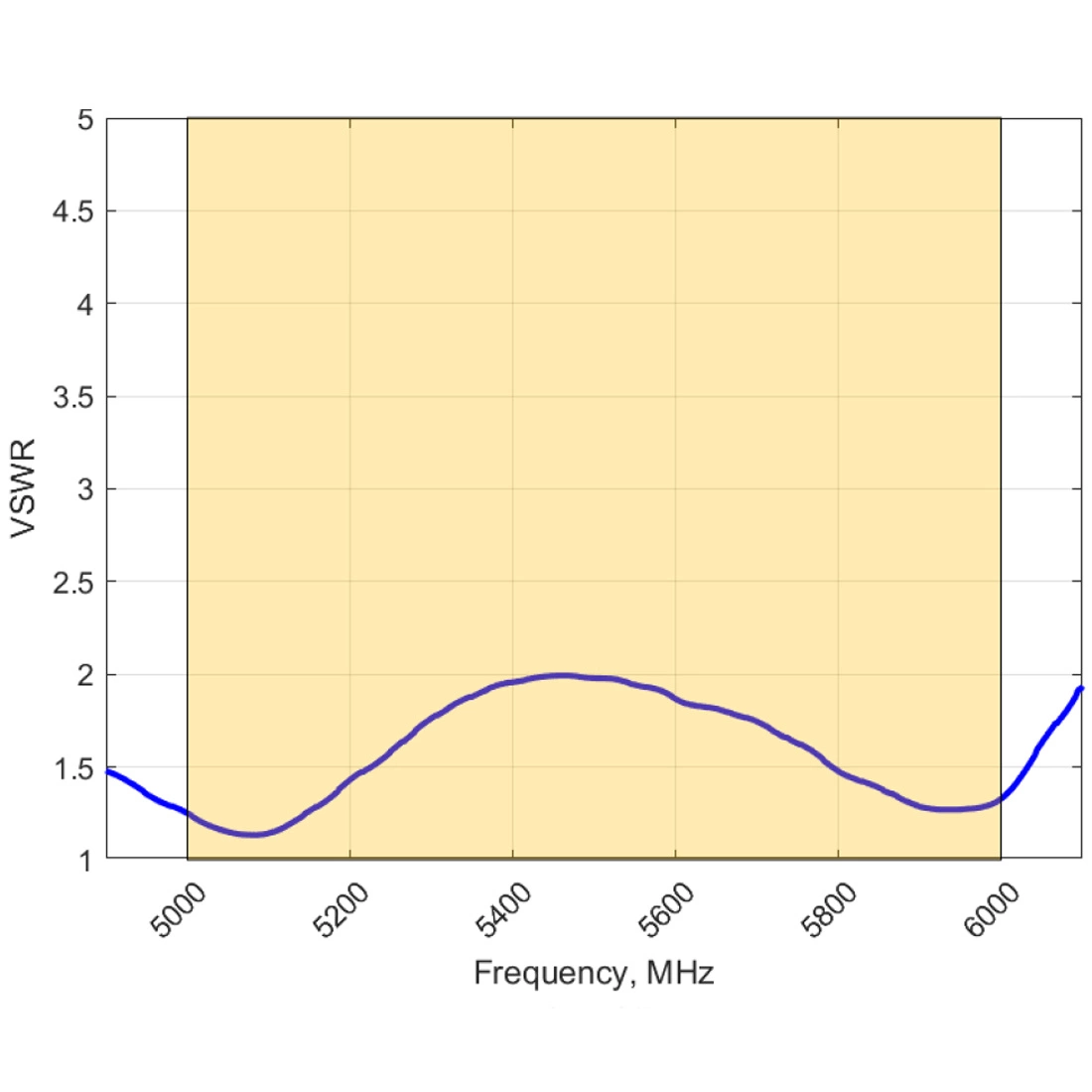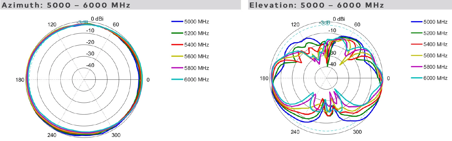 7,5 dBi to szczytowe wzmocnienie we wszystkich pasmach od 5000 do 6000 MHz.