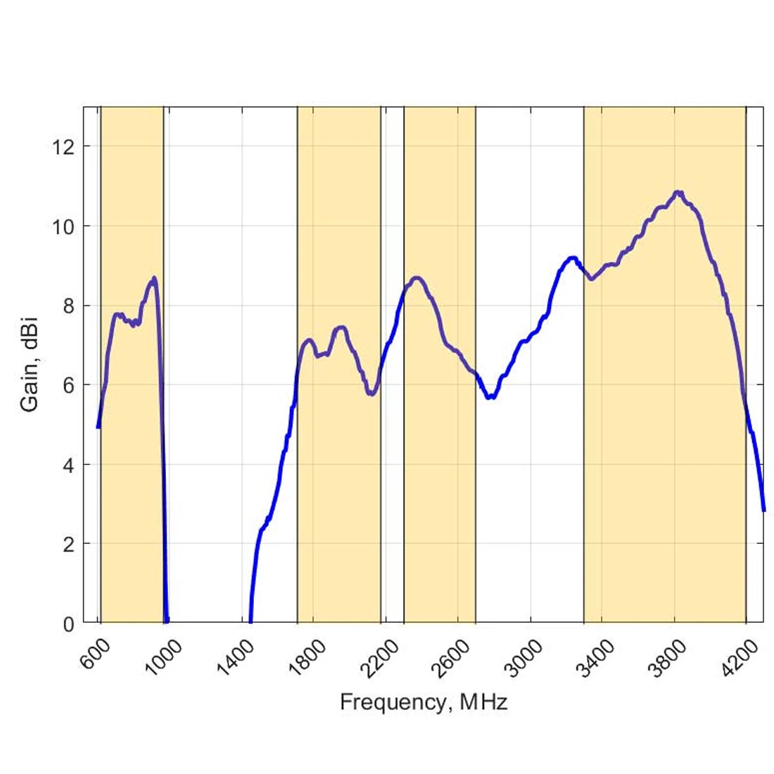 11 dBi is the peak gain in all bands from 617 to 4200 MHz