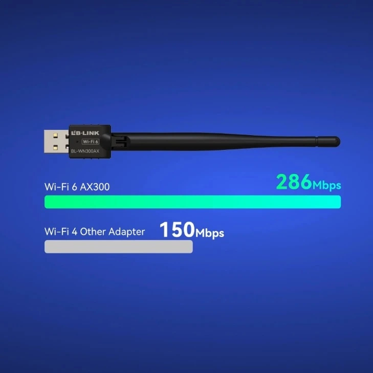 When the LB-LINK BL-WN300AX adapter joins forces with Wi-Fi 6-enabled routers and smartphones, it creates a complete Wi-Fi 6 network that takes full advantage of their advanced performance capabilities. Traditional adapters often limit the potential of modern routers, offering only 50% of their performance. The LB-WN300AX, on the other hand, provides full use of Wi-Fi 6 technology, guaranteeing fast, stable and reliable connections. So you can enjoy smooth streaming, hassle-free online gaming and efficient remote working, using the full power of your modern equipment.