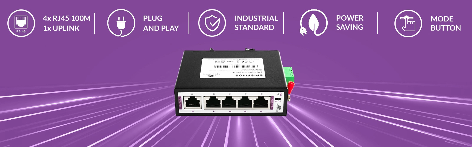 spacetronik 5-port industrial SWITCH 4x 10/100M port + 1x Uplink Ethernet port RJ45 100M SP-SFI105