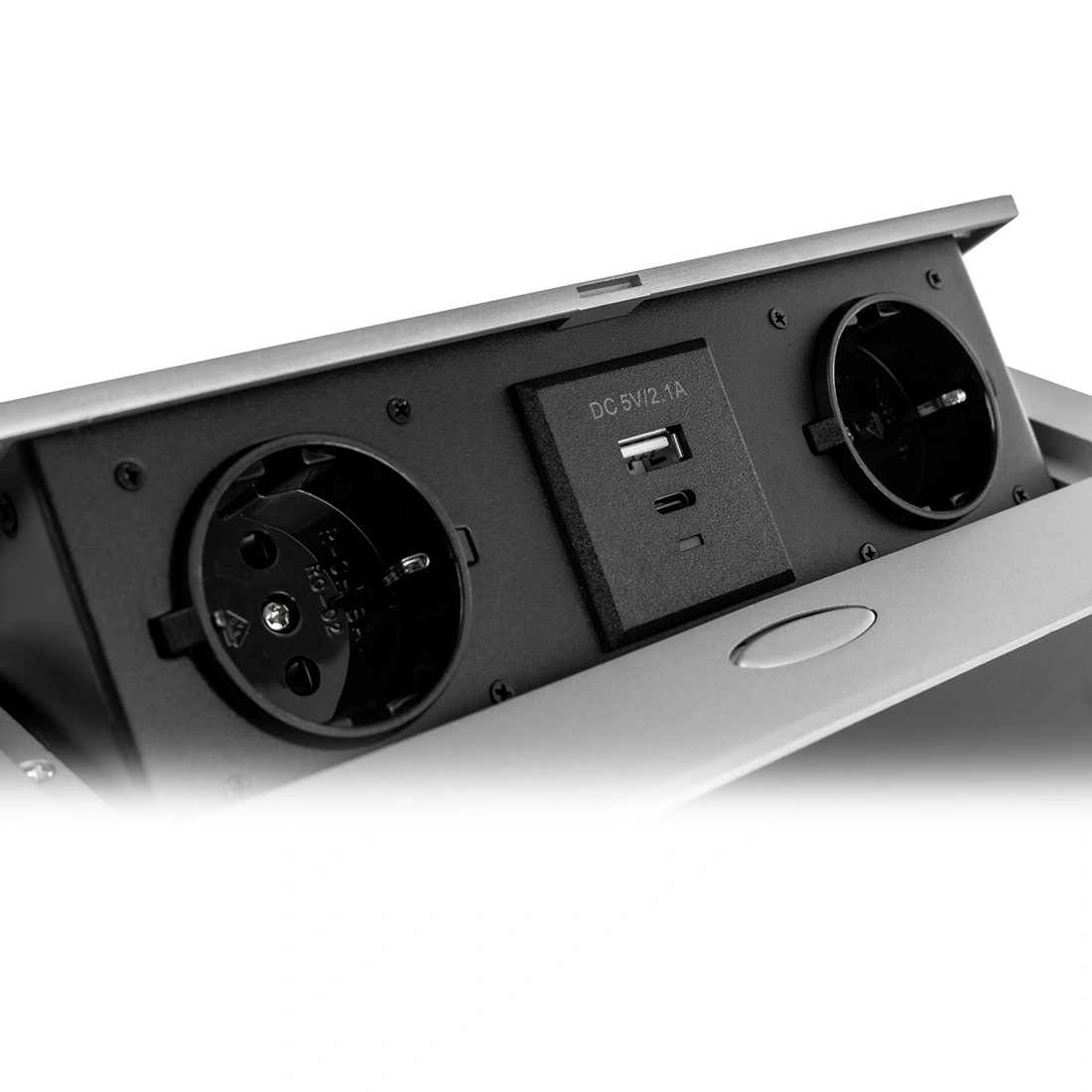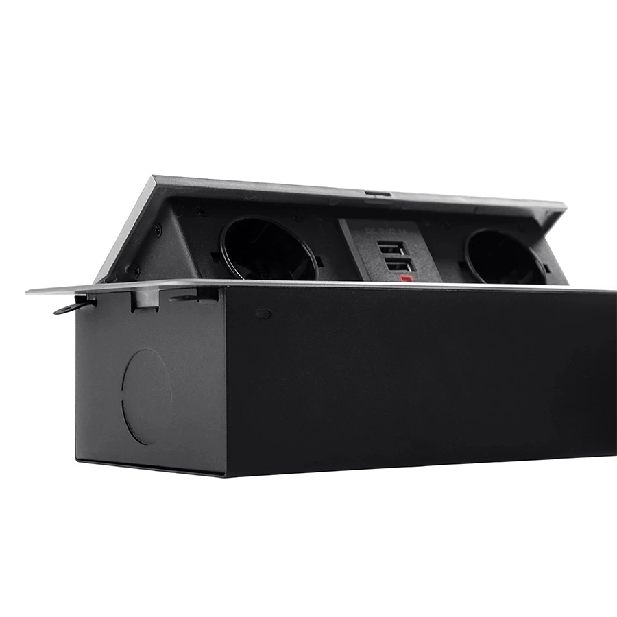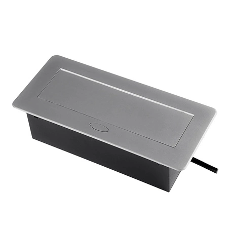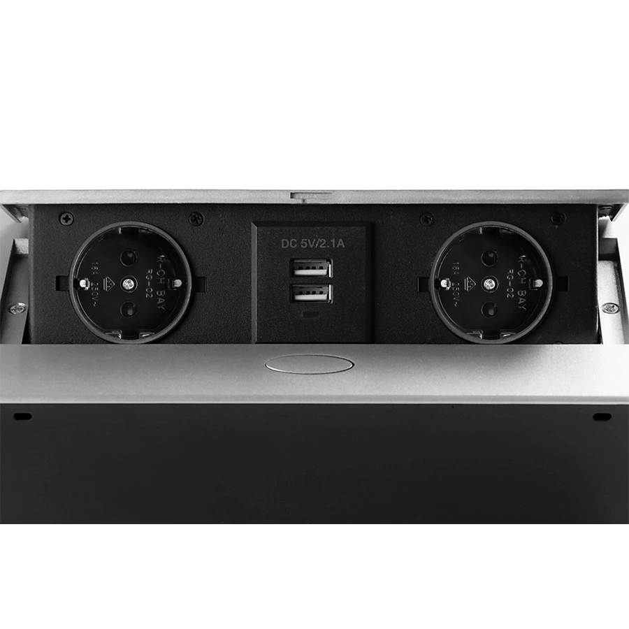 Mediaport Spacetronik ERGOLINE SPS-D24S V2 to nowoczesne rozwiązanie, które znajduje zastosowanie w sklepach, salonach sprzedaży, salach konferencyjnych, biurach a także w domu. Naciśnij przycisk, a gniazda płynnie się otworzą. Wykonany z aluminium i wysokiej jakości komponentów. Produkt jest przeznaczony do montażu wewnątrz pomieszczeń w biurkach, blatach i stołach, zarówno w pozycji pionowej jak i poziomej, zapewniając dostęp do gniazd. Mediaport został wyposażony w 2 gniazda 110-250 V (typ Schuko) oraz podwójną ładowarkę USB.