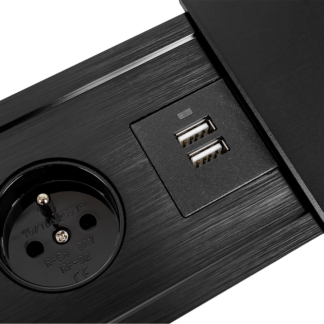 - 2x gniazdo typu francuskiego 110-250 V (16 A)- 1x podwójna ładowarka USB (2x USB-A)