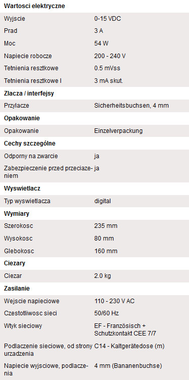 Cyfrowy zasilacz laboratoryjny, 1-15 V DC, 0-3A