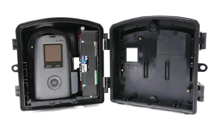 W obudowie zamontowany (wyjmowany) został magazynek na baterie AA z możliwością umieszczenia aż 16 baterii i podłączenia ich do kamery w celu przedłużenia jej zasilania. Przy odpowiednich ustawieniach kamery można w ten spsoób uzyskać aż rok ciągłej pracy bez konieczności podłączania zewnętrznego zasilania (wymagana karta pamięci SD o dużej pojemności aby zapisać tak długi czas nagrań, rok pracy możliwy do uzyskania z modelem TLC200 Pro).