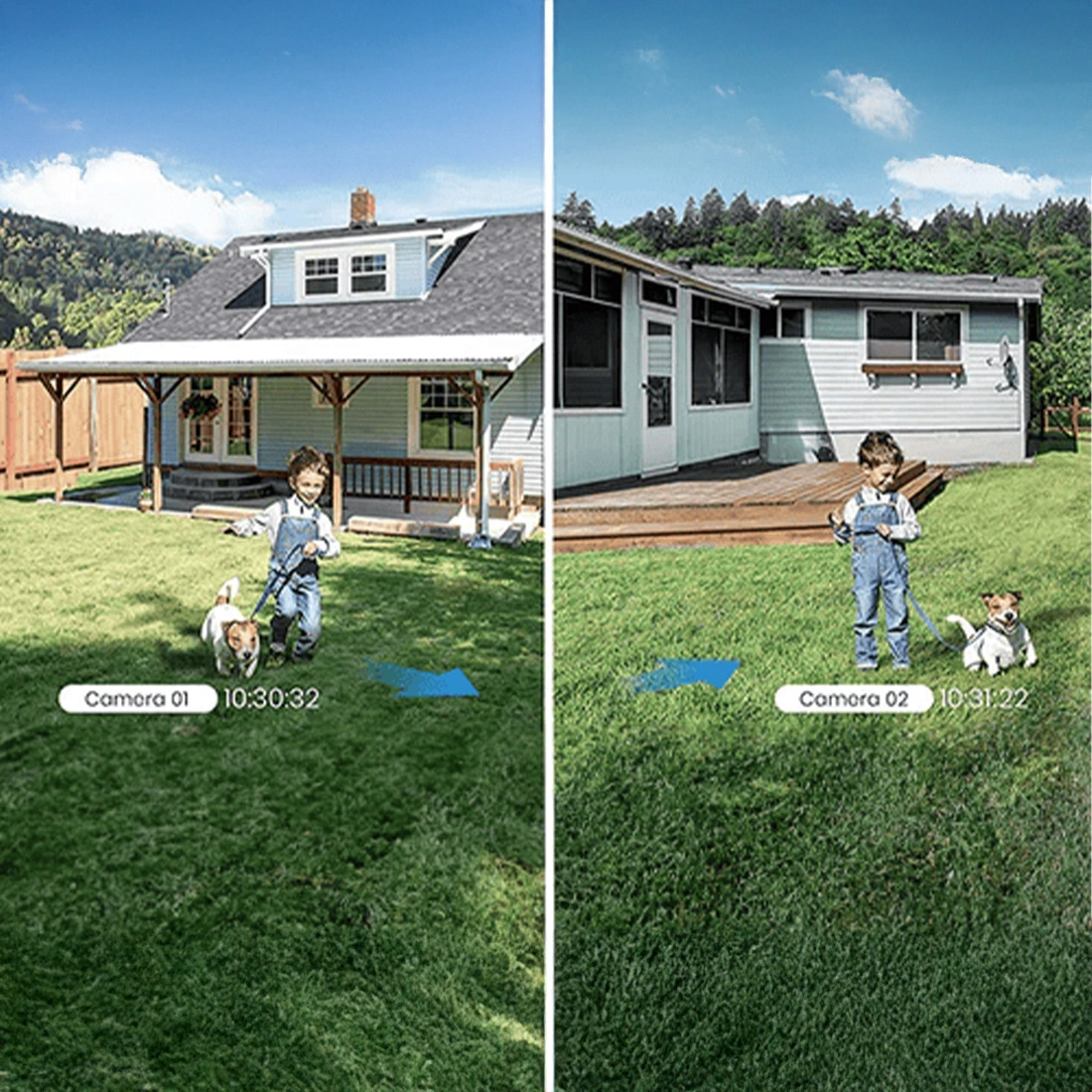 When setting up a video surveillance system in front of your home, you'd like to make sure that you see everything important on it. Often, however, when using a single camera, you have to face the problem of the so-called dead zone. This is the space that does not fit within the field of view of the camera. Easily avoid this problem. The cameras in the Aosu SL-C6S-2H set are equipped with a wide viewing angle of up to 166 degrees. This gives you a total field of view of 332 degrees. What's more, you don't have to place the cameras side by side. So you can have completely extreme places in front of your house under control. You can decide yourself which space you want to have under protection. In addition, you can view images from both cameras side by side at the same time. All on one phone screen.