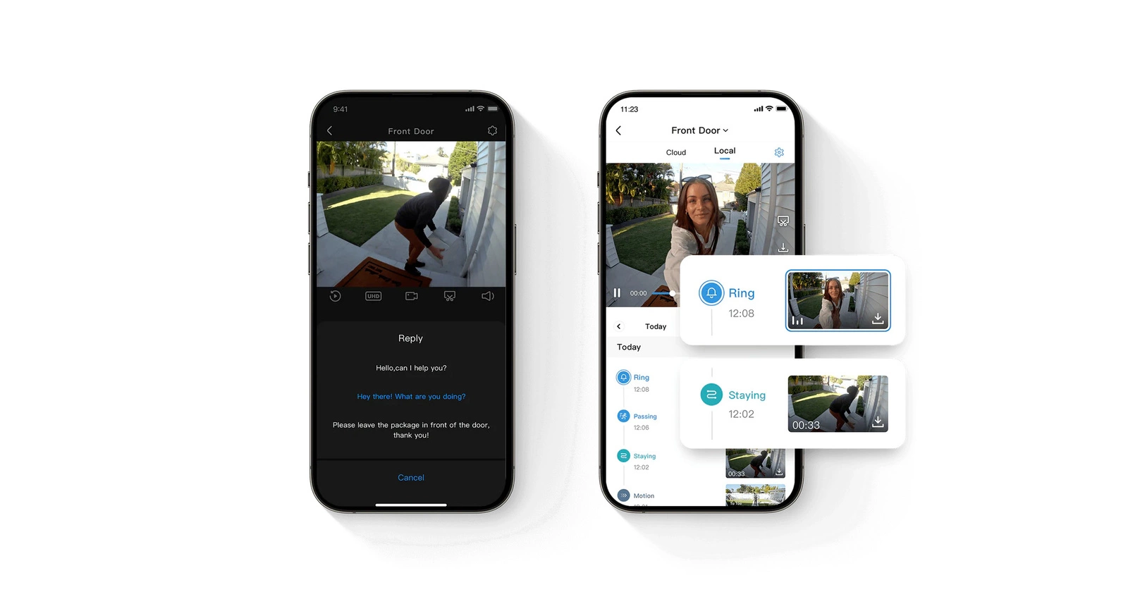 Receive notifications with thumbnails so you can quickly see who is at the door.