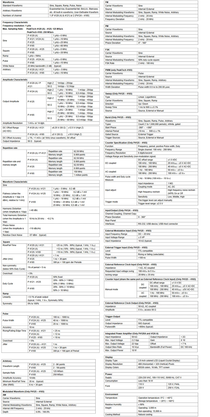 Generator funkcji arbitralnych 1CH, 1 ?Hz - 5 MHz wzmacniacz 10W PeakTech 4120A
