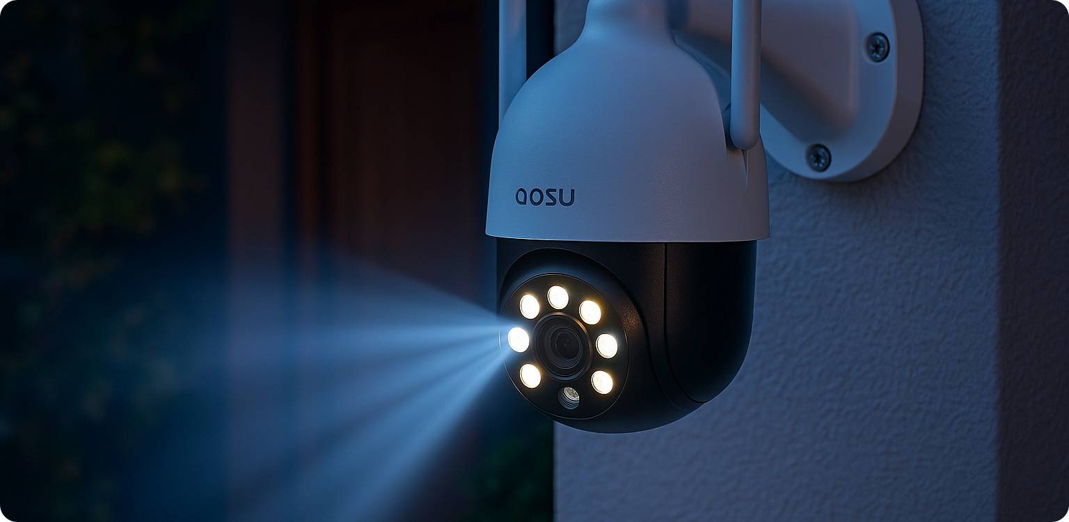 W nocy wiele dzieje się po cichu, dlatego dobrze, gdy widzisz więcej niż tylko kontur. Kamery AOSU oferują zaawansowany tryb nocny w kolorze. Dzięki temu po zmroku nadal możesz zidentyfikować osobę, rozpoznać elementy ubioru, a nawet zauważyć co ktoś trzyma w ręku. To kluczowe np. wtedy, gdy ktoś podchodzi do domu nocą i nie wiadomo jeszcze, czy to sąsiad, czy złodziej.