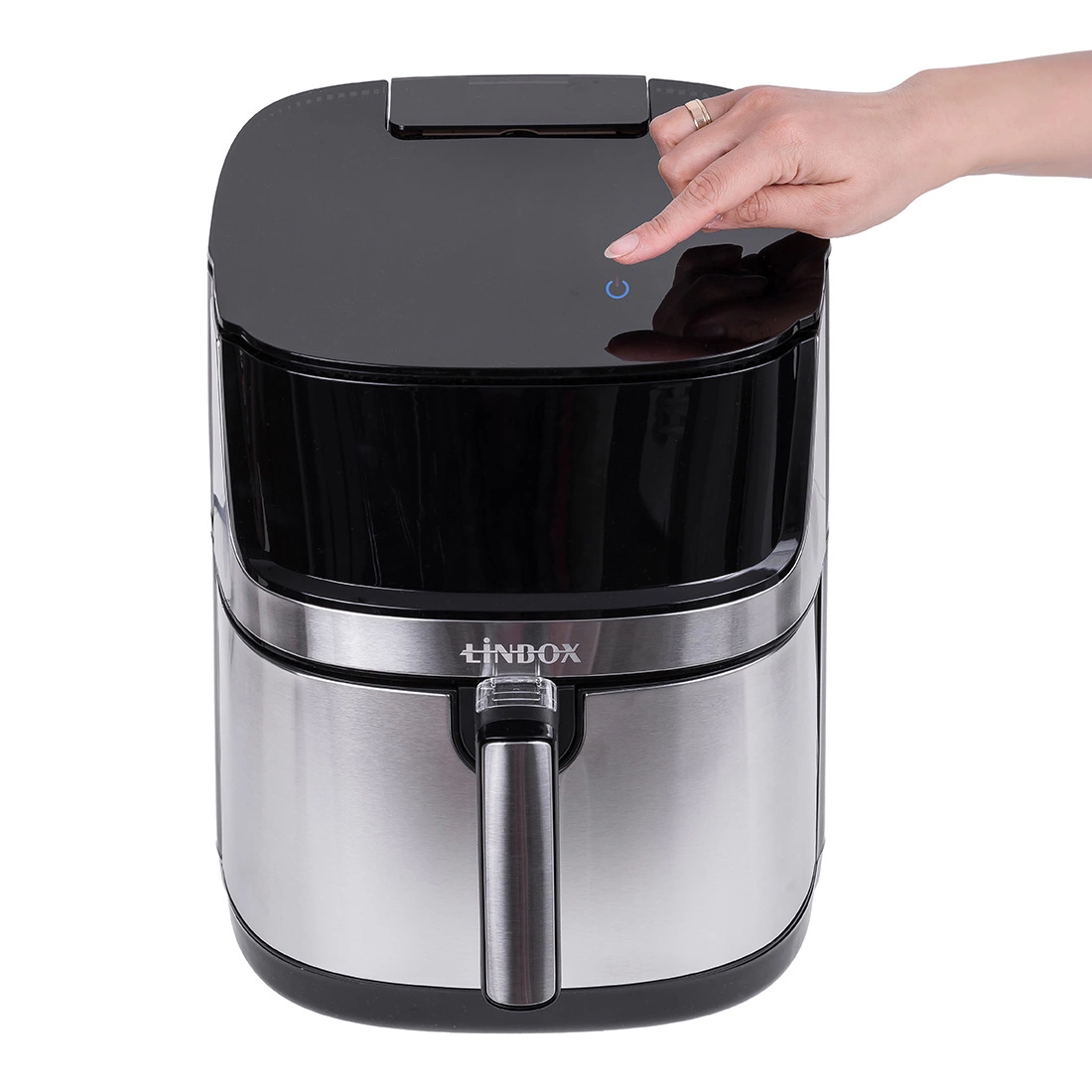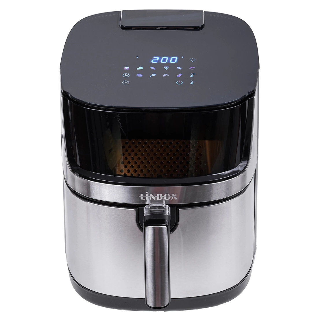 Frytkownice beztłuszczową Linbox bez problemu obsłużysz za pomocą dotykowego panelu u góry urządzenia. Z łatwością ustawisz temperaturę, wybierzesz tryb czy też np. ustawisz timer. Z podświetlanym okienkiem nie będziesz musiał za każdym razem wyjmować koszyczka z komory, by sprawdzić, czy Twoje danie jest gotowe. Nie będziesz wypuszczał gorącego powietrza z urządzenia. Tym samym zadbasz o to, by Twoja potrawa była idealnie soczysta i chrupiąca.