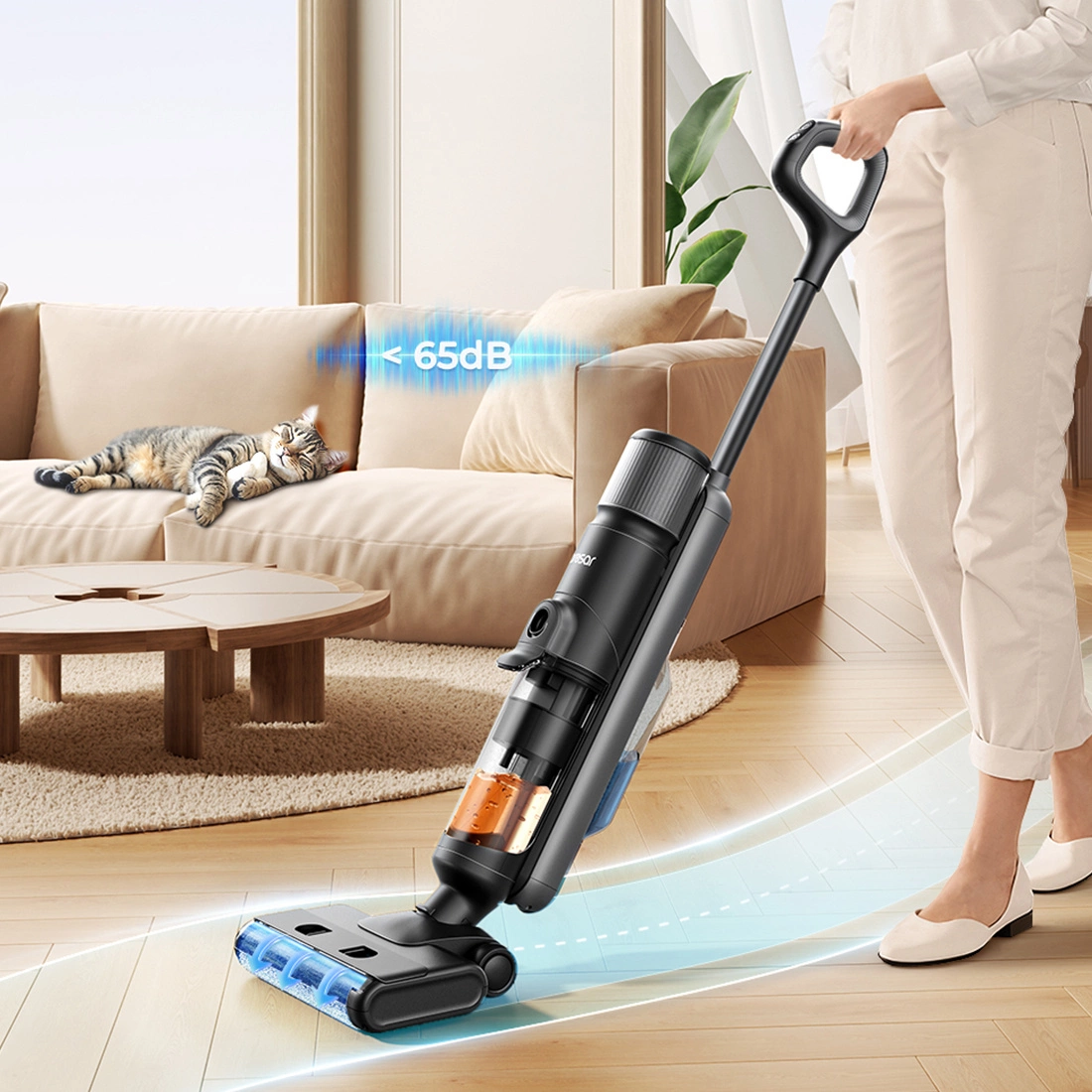 Ten odkurzacz z funkcją mopa ma trzy inteligentne tryby pracy, które można dopasować do swoich potrzeb. Tryb Smart automatycznie dostosowuje moc ssania i ilość wody do poziomu zabrudzeń. Vac to funkcja pochłaniania cieczy, idealnie nadająca się do zbierania nadmiaru wody w łazienkach. Max zapewnia maksymalną moc i intensywne nawilżenie, sprawdzając się przy uporczywych plamach i gruntownym czyszczeniu na mokro. Przełączaj tryby bez problemu i ciesz się pełną kontrolą nad Twoim sprzątaniem.