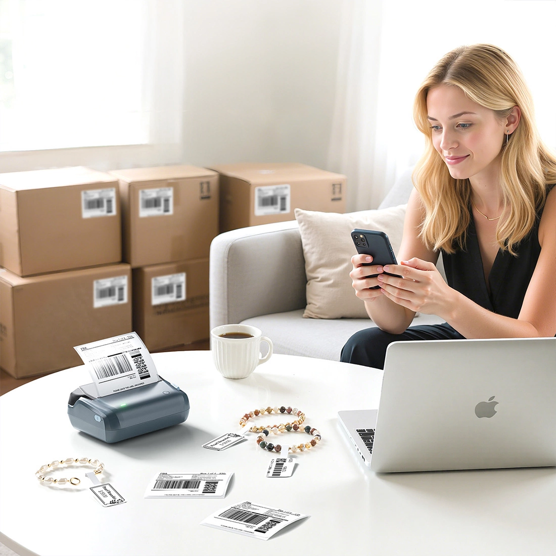 W Niimbot B4 Bluetooth nie jest dodatkiem, tylko głównym sposobem pracy. Drukarka łączy się zarówno ze smartfonem, jak i z komputerem z Windows – bez kabla USB. Wystarczy aplikacja NIIMBOT i możesz drukować etykiety, gdziekolwiek jesteś: w magazynie, na regale wysyłkowym, a nawet w punkcie odbioru paczek. To wygoda, której brakuje w standardowych drukarkach 4×6".