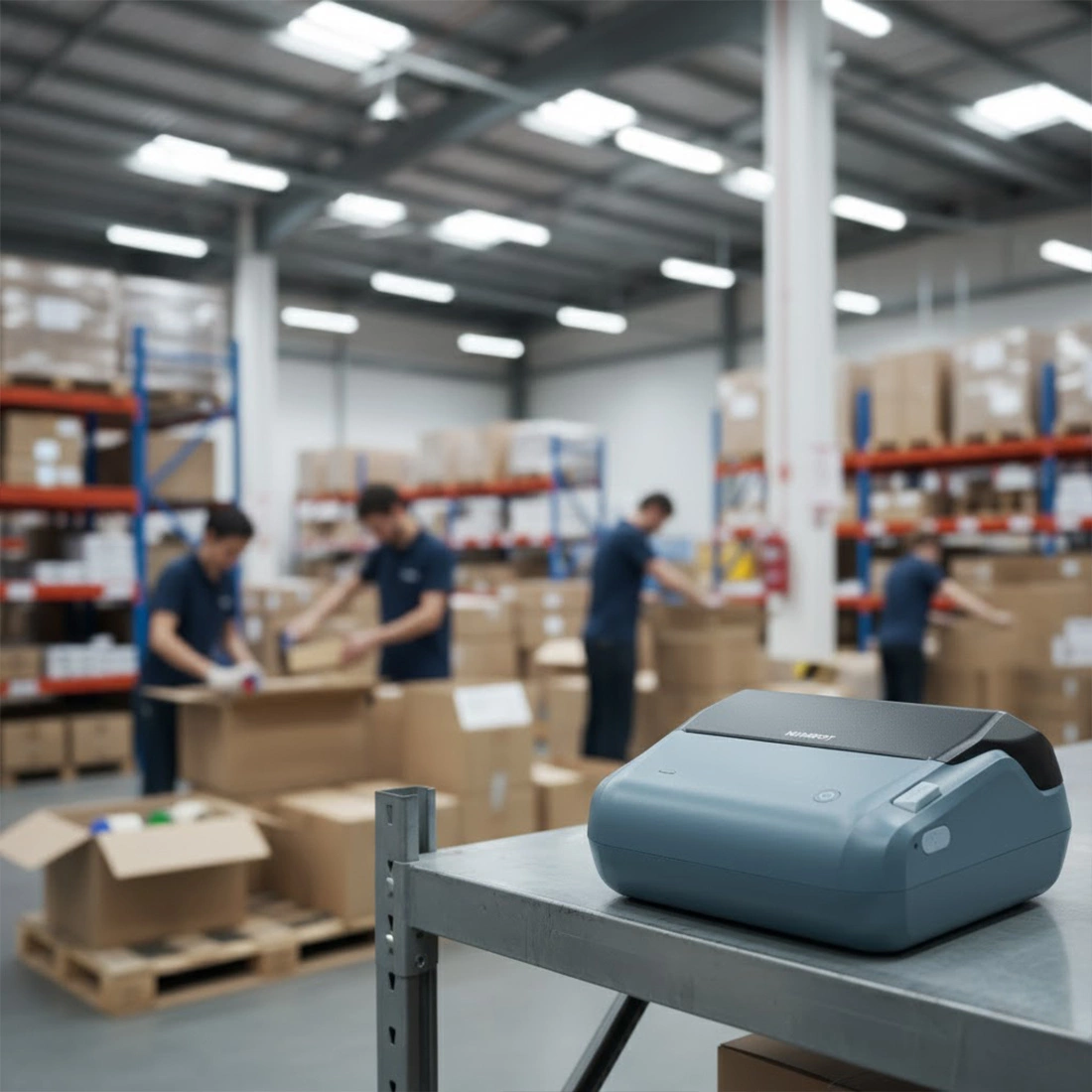 Niimbot B4 sprawdzi się także w zespole. Do drukarki może jednocześnie podłączyć się nawet 10 telefonów — 3 urządzenia z iOS i 7 z Androidem. To wygodne rozwiązanie w punktach pakowania, magazynach oraz miejscach, gdzie wiele osób tworzy etykiety w ciągu dnia.