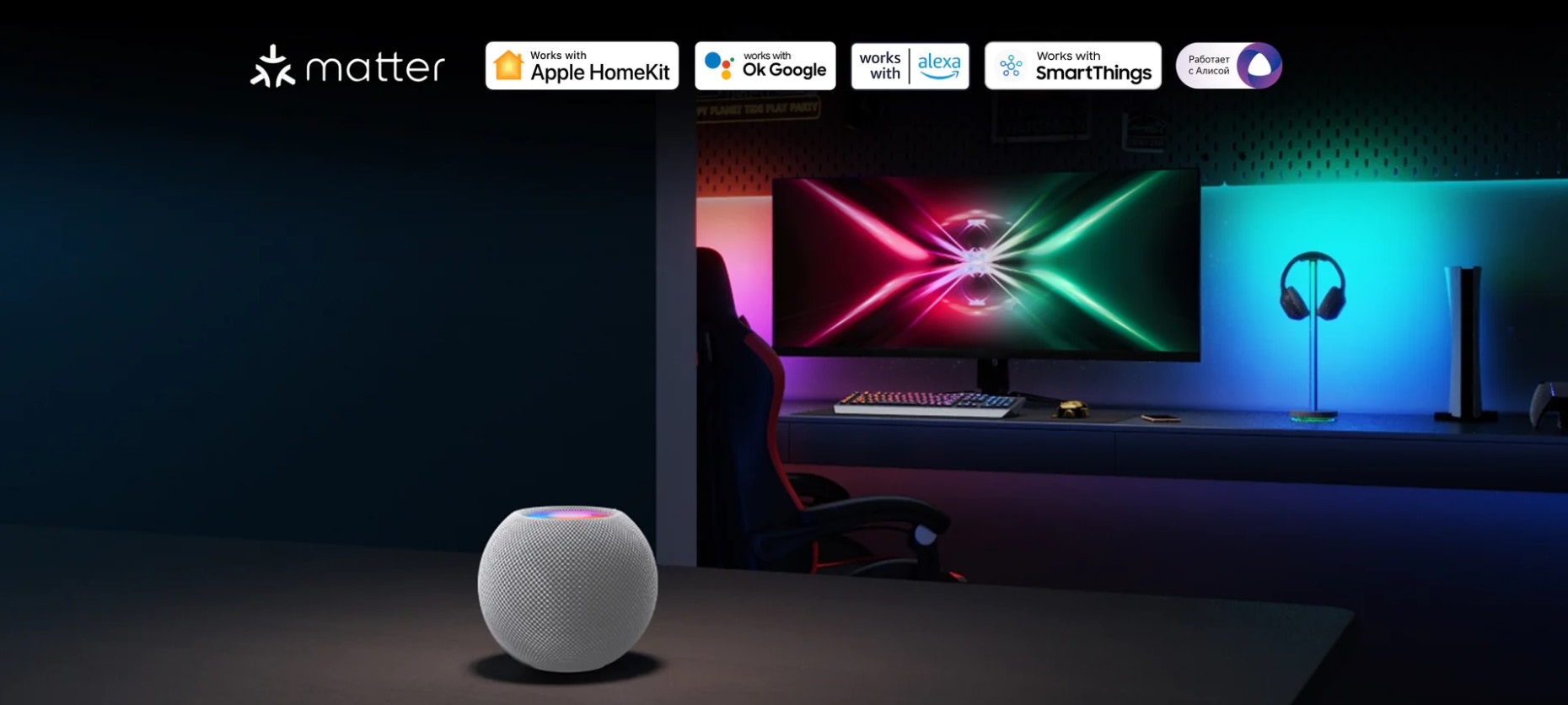 Lampka współpracuje z czołowymi aplikacjami z obsługą głosową. Matter, Apple HomeKit, Google, Alexa, Smart Thing dzięki czemu obsługa staje się jeszcze bardziej wygodna i przyjemna. Wciąga w rozbudowę sytemu smart home lub też może być początkiem zabawy z urządzeniami smart.