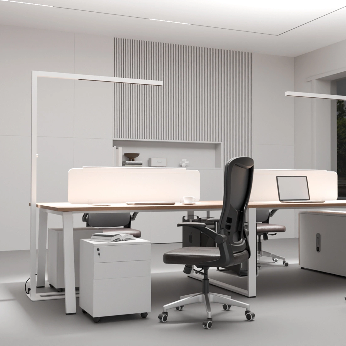 Dzięki stalowej podstawie w kształcie litery U i lekkiej konstrukcji z aluminium, lampę można łatwo przestawić w dowolne miejsce biura. Nie wymaga skomplikowanego montażu - wystarczy ustawić ją tam, gdzie światło jest potrzebne. To praktyczne rozwiązanie dla dynamicznych przestrzeni pracy, gdzie aranżacja często się zmienia.