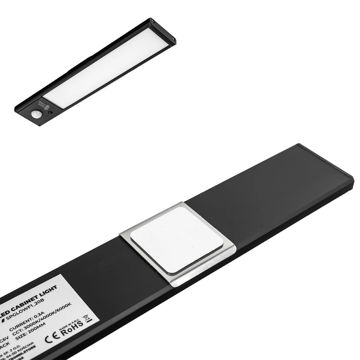Lampa o długości 20 cm posiada inteligentny sensor światłoczuły, który wykrywa warunki panujące w otoczeniu. Jeżeli w pomieszczeniu jest ciemno, lampka włączy się po wykryciu Twojej obecności. Jeżeli zaś jest jasno, światło nie zostanie zapalone, co pozwoli Ci zaoszczędzić prąd. Istnieje też możliwość manualnego włączenia lampki o dowolnej porze dnia - wystarczy nacisnąć jeden przycisk! Dysponuje temperaturą barwową 3000-6000K. Z łatwością może rozświetlić każdy kąt. Jasność oświetlenia można regulować. Do mocowania Lampki nie potrzebujesz dodatkowych narzędzi. Za pomocą dołączonego do zestawu magnesu montaż mocowania akcesorium jest prosty i szybki.