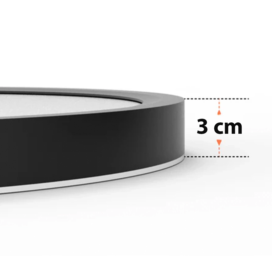 Lampa ma bardzo cienki profil, dzięki czemu ładnie przylega do sufitu i nie dominuje pomieszczenia. Sprawdza się zarówno w nowoczesnych, jak i klasycznych aranżacjach. Jej lekka forma wizualnie porządkuje przestrzeń, a równomiernie rozproszony panel LED daje jednolite światło bez ostrych cieni.