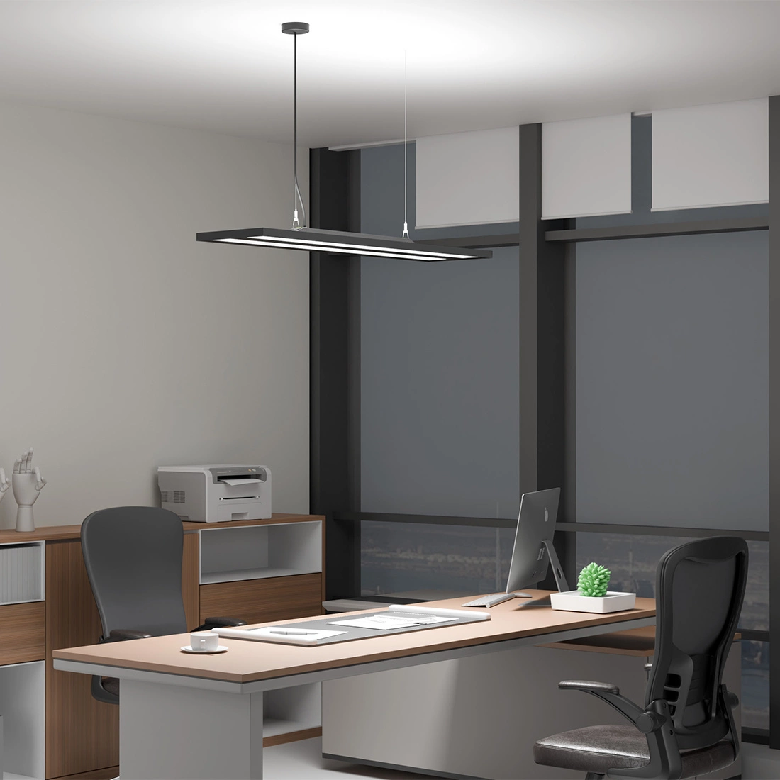 GLOW D22 Pro to profesjonalna lampa sufitowa wisząca do biur, recepcji i przestrzeni coworkingowych. Rozsyła światło w dwóch kierunkach – w górę i w dół – równomiernie doświetla otoczenie i pewnie akcentuje blat roboczy. Neutralne światło 4000 K, CRI Ra > 90 i UGR < 13 sprzyjają pracy przy monitorach, a skuteczność 125 lm/W pomaga ograniczać zużycie energii. Możliwość łączenia wielu opraw pozwala szybko zbudować długie, spójne linie światła przez całość pomieszczenia.
